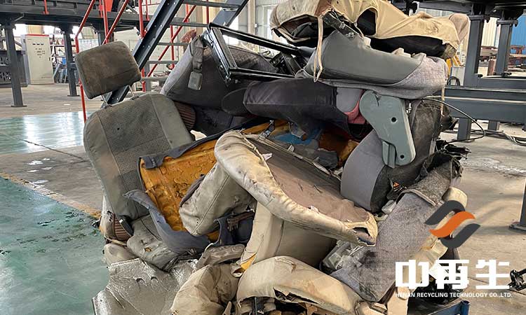 在大型報廢拆解汽車中心,每天會產(chǎn)生大量的車中的座椅,由于拆解麻煩且費時費力,再加上產(chǎn)生大量 的皮套與海綿無法處理,因此拆解中心都不愿拆解座椅,只能把大量廢舊座椅用于出售。